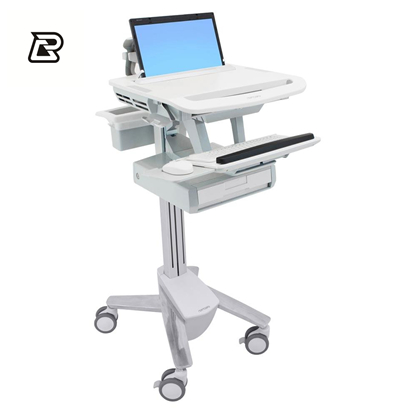 这款设计创新、操控方便、真正符合人体工程学特点的医疗保健手推车具备齐全的功能,包括坐姿到站姿高度调节和可向后调节倾斜度的键盘托架。